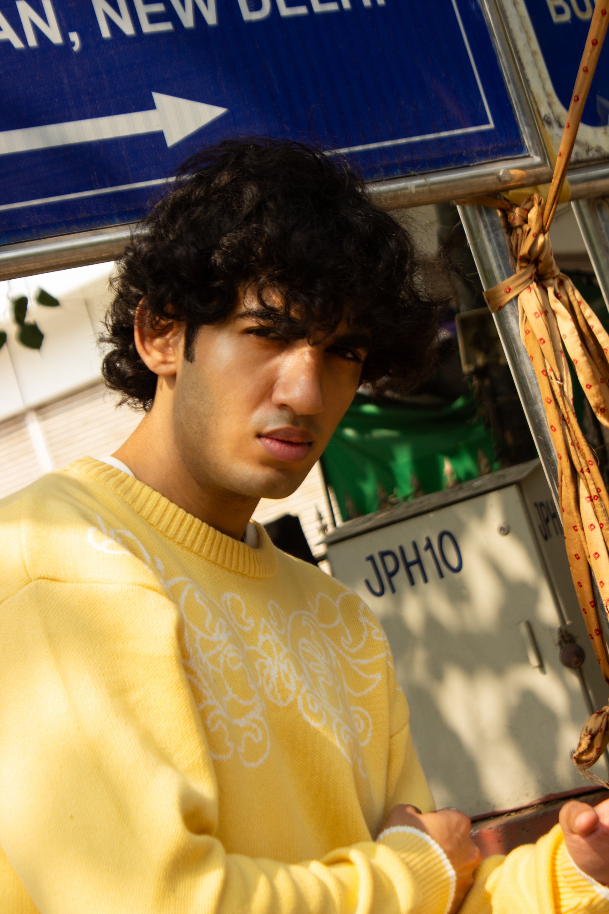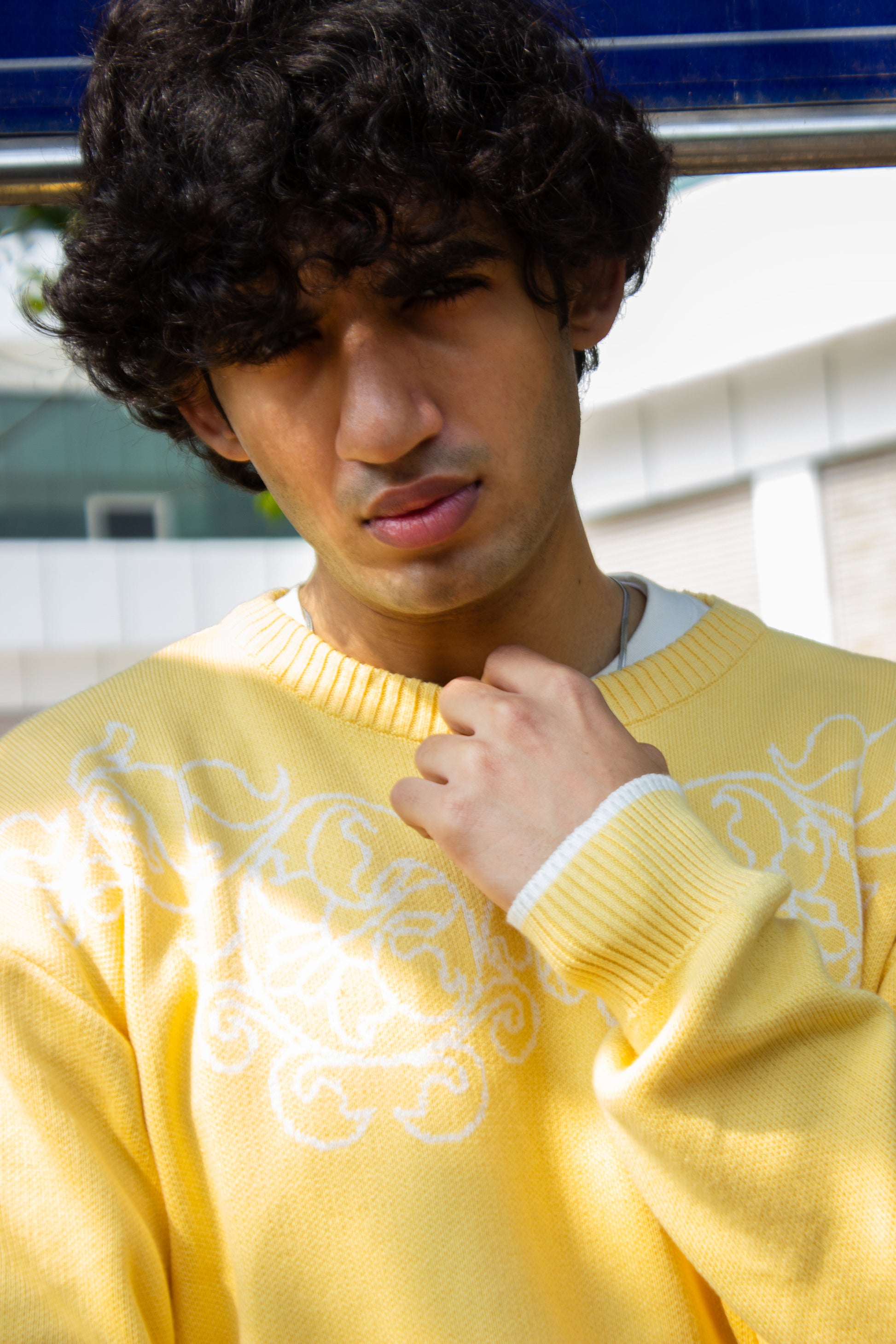 Cotton Knit Jacquard Jumper in Butter Yellow.